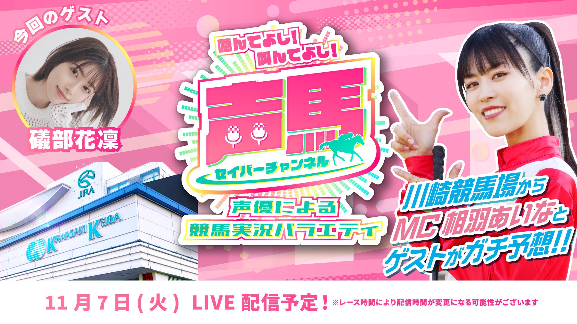 『声馬チャンネル(セイバーチャンネル)@川崎競馬場』は、競馬好きの声優相羽あいなさんをMCに迎えた斬新な競馬YouTube番組です。