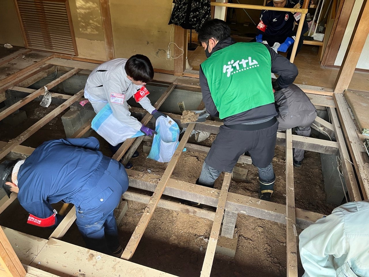 - 従業員も被災地を訪問し、ボランティア支援活動を行っている