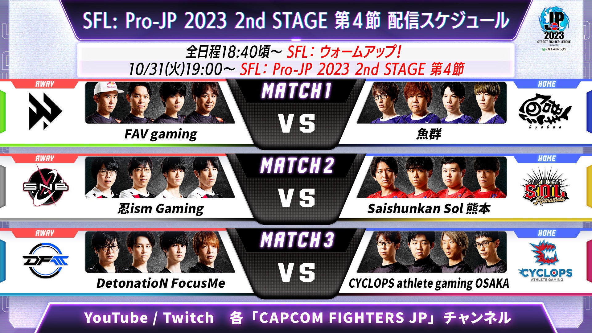 「ストリートファイターリーグ: Pro-JP 2023」2nd STAGE 第3節の試合速報です。