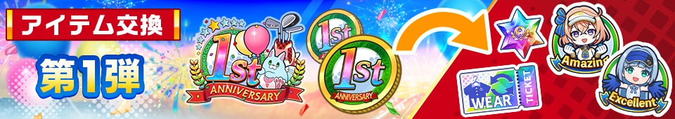 これらのイベントで獲得できる「1st ANNIVERSARY コイン」を集めると、ウェア交換チケットやガチャチケットなどの豪華な報酬と交換することができます。