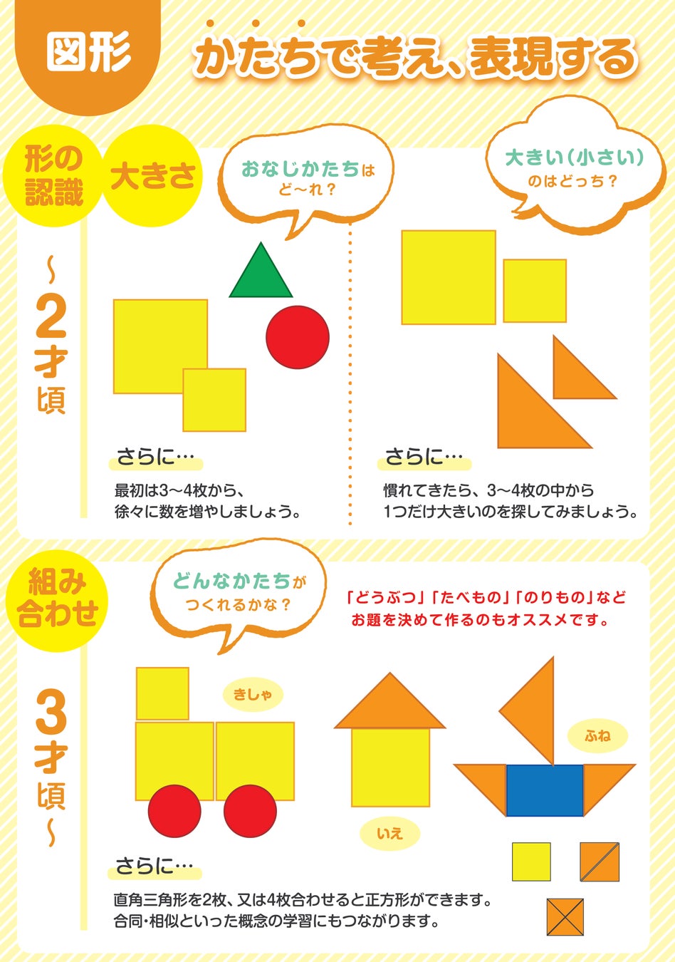 この商品は親子のコミュニケーションをサポートし、楽しく図形や数、概念を学ぶことができます。