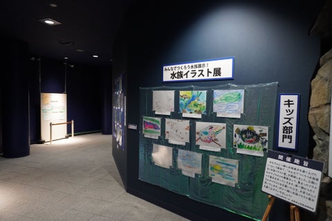 この展示は、水族展示室水槽の復旧に向けて行われるもので、読者の皆様から募集したイラストを展示いたします。