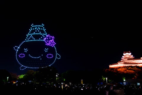 写真では、姫路城と「しろまるひめ」のドローンショーが楽しめます。