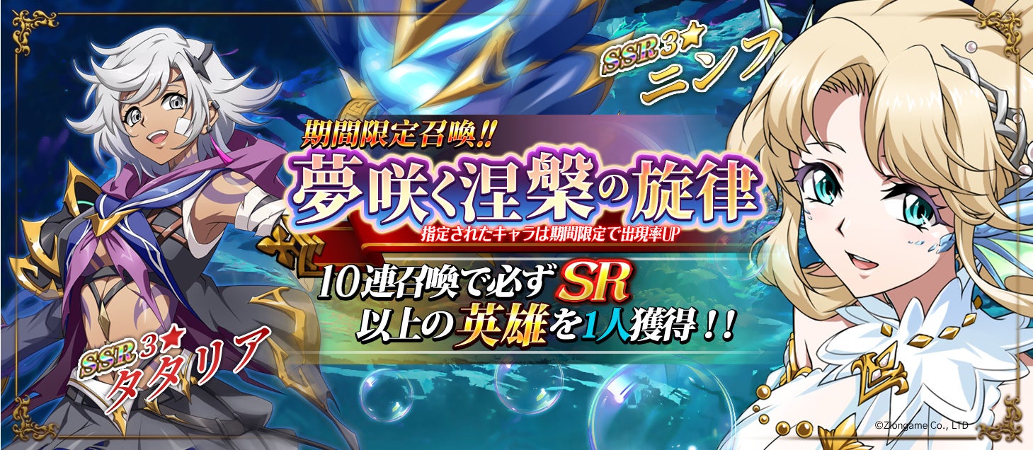 また、期間限定召喚『夢咲く涅槃の旋律』では、SR以上の英雄が確実に手に入るチャンスがあります。