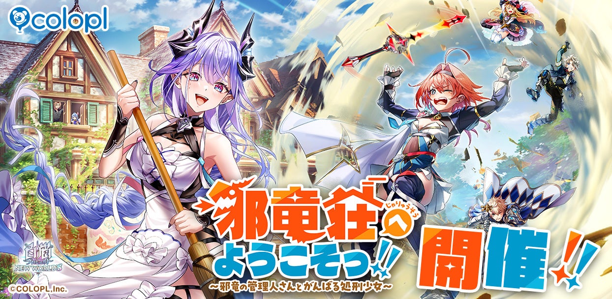 株式会社コロプラは、スマートフォン向けの本格3DアクションRPG『白猫プロジェクト NEW WORLD’S』に新イベント「邪竜荘へようこそっ!!~邪竜の管理人さんとがんばる処刑少女~」を開催しました。