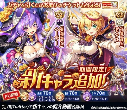 DMM GAMESの『神姫PROJECT』は、新たな神姫「ゼウス」「ヘーラー」のハロウィン衣装が初登場することを発表しました。