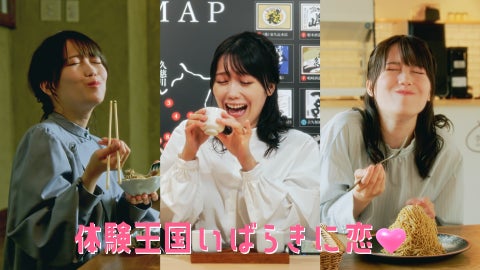 CMでは、女性が茨城でさまざまなアクティビティや食事を楽しんでいる様子が描かれています。