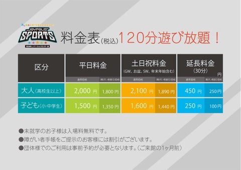 - 30種類以上、ドッジボール、卓球、バスケットボール、ボルダリング、トランポリン、スケートボード