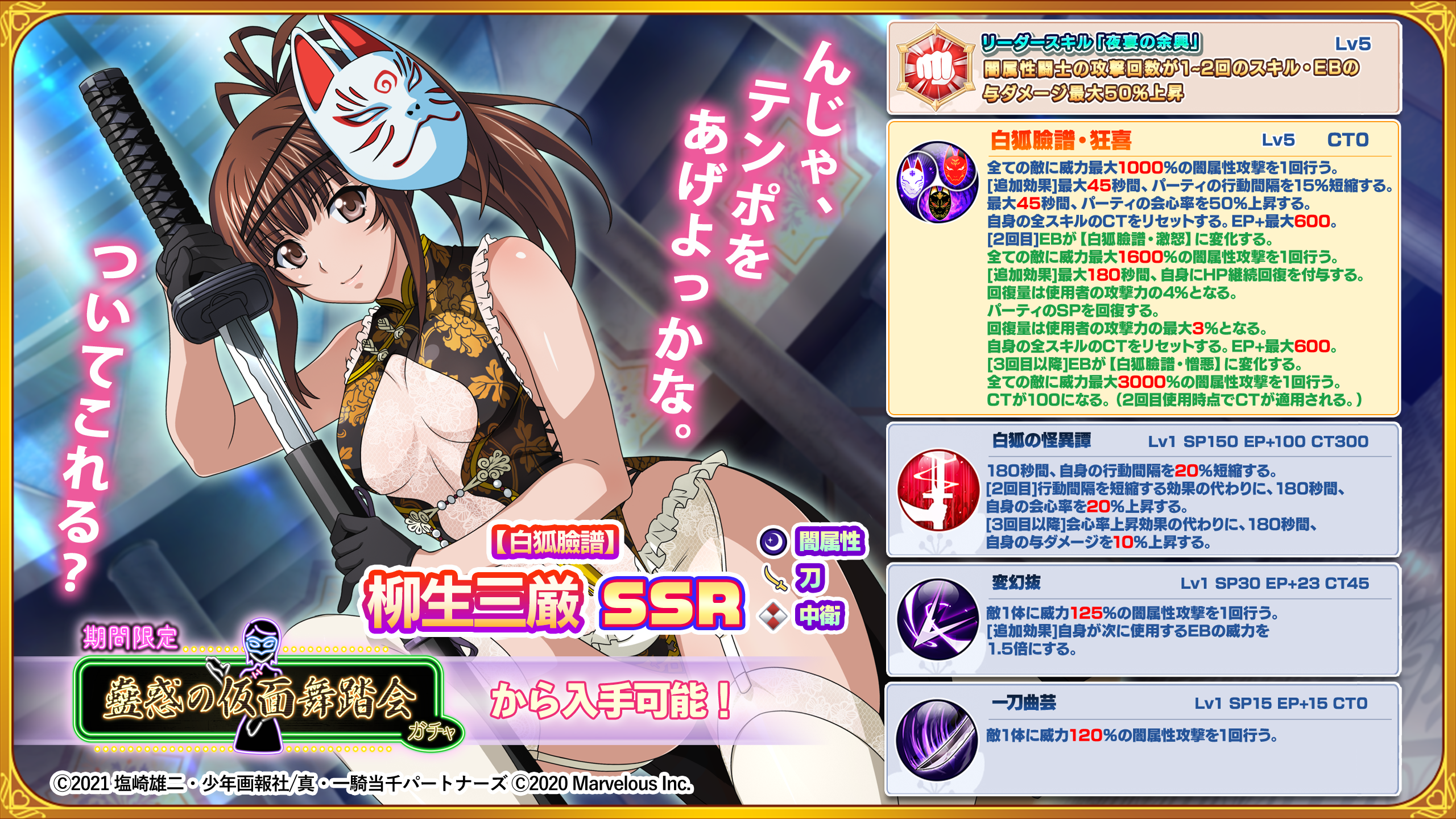 同ガチャでは、「【白狐臉譜】柳生三厳」の排出率が他の同レアリティの闘士よりも高くなっております!