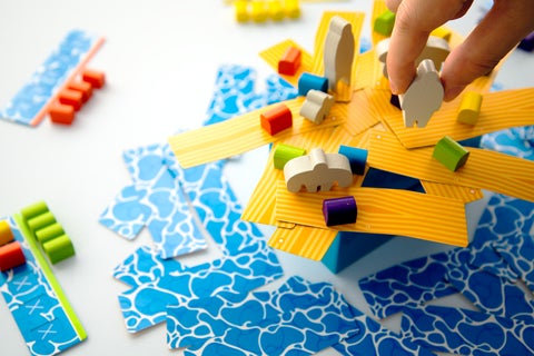 - 『いかだの5人』はバランスゲームで、宝箱を積んだいかだを作りながらプレイする