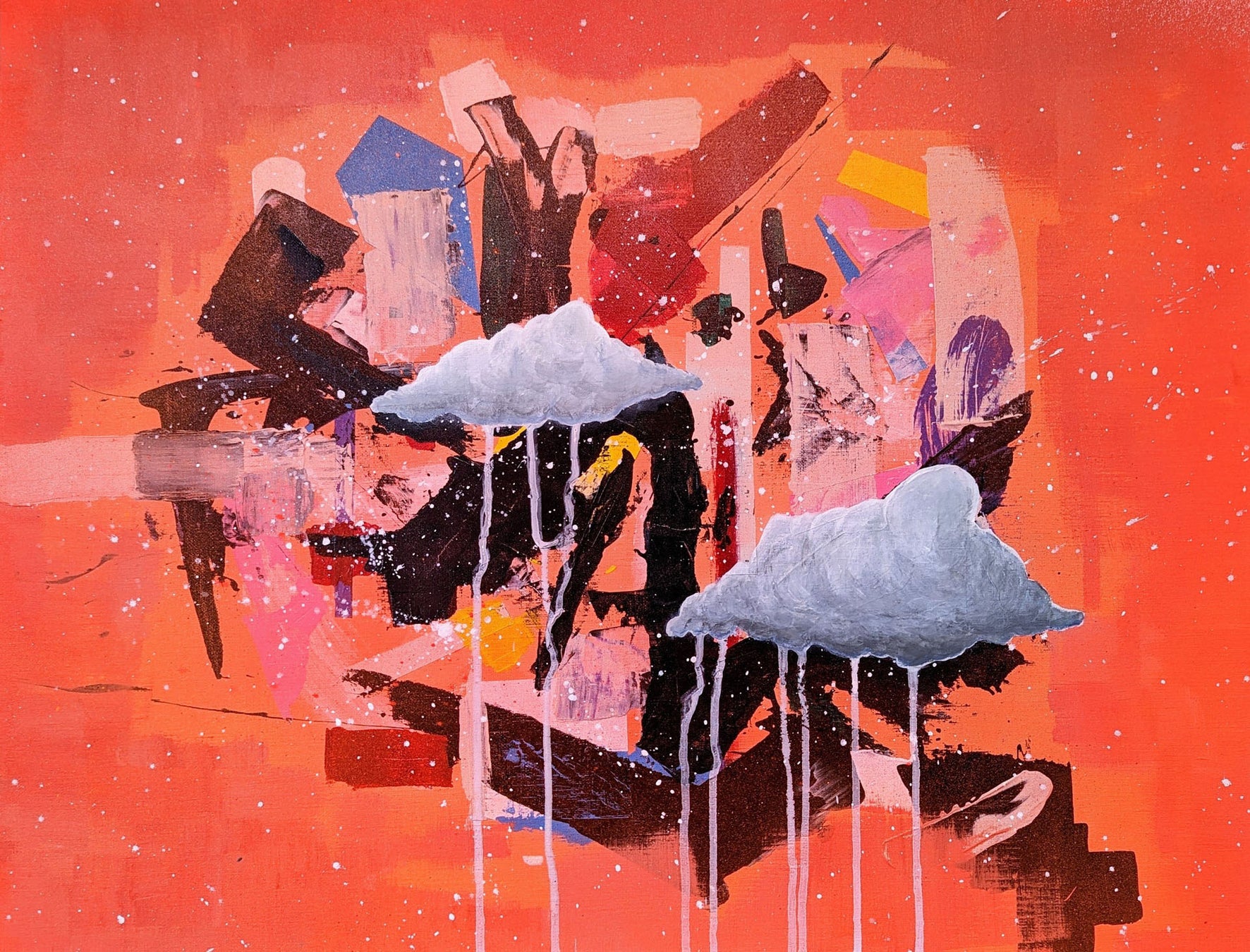 サッカラーニ愛の作品は4階にあり、抽象作品には温かみが感じられます。