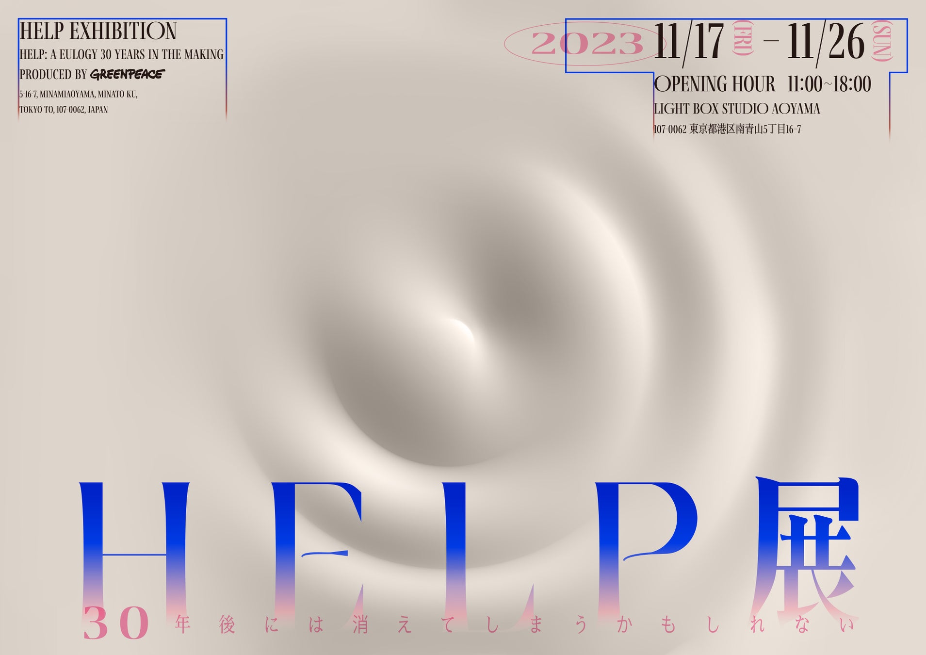 2023年11月17日(金)から11月26日(日)まで、東京都港区南青山のLIGHT BOX STUDIO AOYAMAで開催される「HELP展」は、気候変動に関する展示会です。