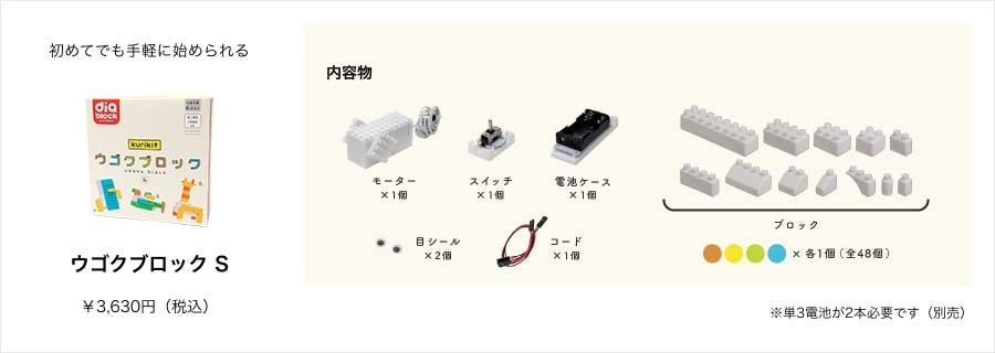 3種類のウゴクブロックがあり、予約販売も始まっています。
