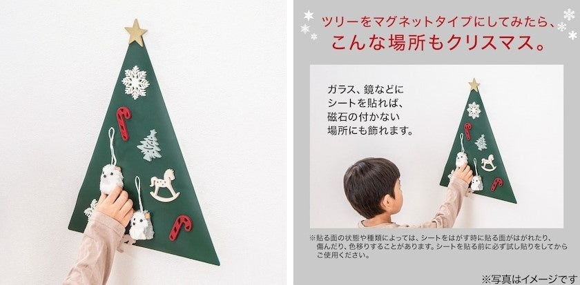 - クリスマスアイテム、壁掛けミニセットツリー(スノー)、セラミックLED、マグネットオーナメント9P&シート