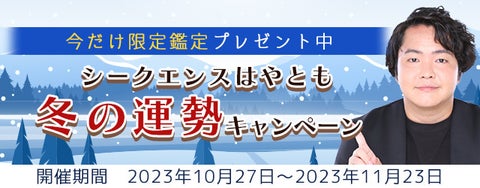 霊視芸人シークエンスが『冬の運勢キャンペーン』を開催しています!このキャンペーンでは、対象の占いを読むと、人生占いや恋愛占いなどの限定鑑定がプレゼントされます。