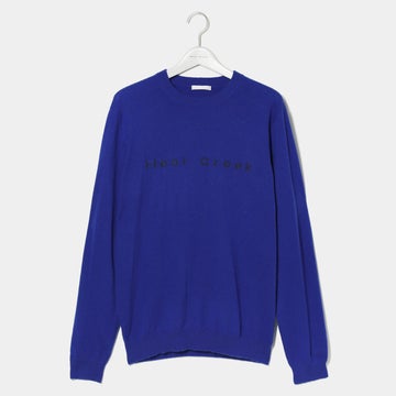 カシミヤ100%の素材で、ソフトな肌触りとジャガードのロゴが特徴的なクルーネックニットです。