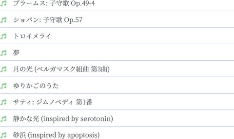 1曲をリピート再生し、小さな音量で楽しむことをおすすめします。