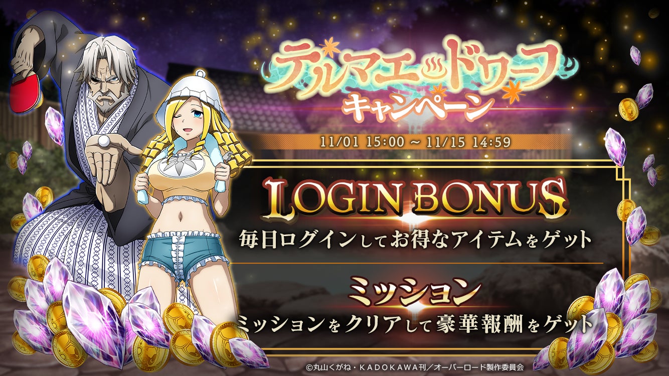 さらに、「テルマエ・ドワーフキャンペーン」も開催され、ログインボーナスや限定ミッションが用意されています。