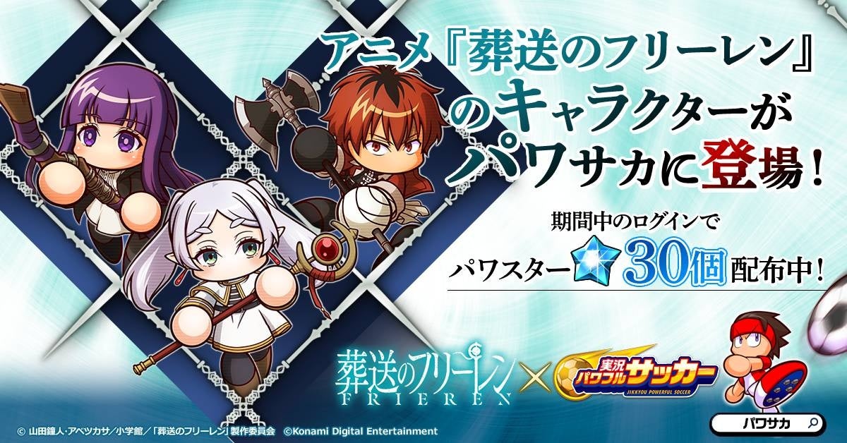 今回のコラボでは、『パワサカ』に物語の主人公「フリーレン」や人気キャラ「フェルン」「シュタルク」が新イベキャラとして登場します!さらに、「サクセス」モードではフリーレン一行が敵チームとして出現し、豪華なアイテムがもらえるイベントやキャンペーンも開催中です。