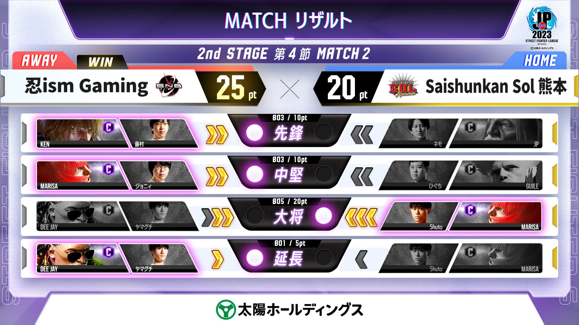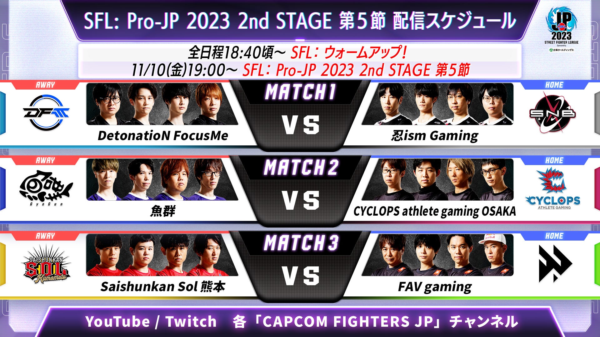 「ストリートファイターリーグ: Pro-JP 2023」2nd STAGE 第4節の試合速報です。