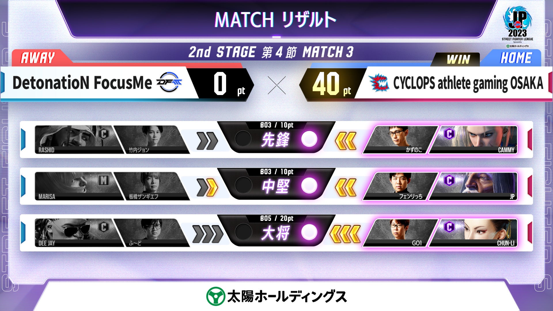 - ストリートファイターリーグ: ProJP 2023 2nd STAGE 第4節の試合速報