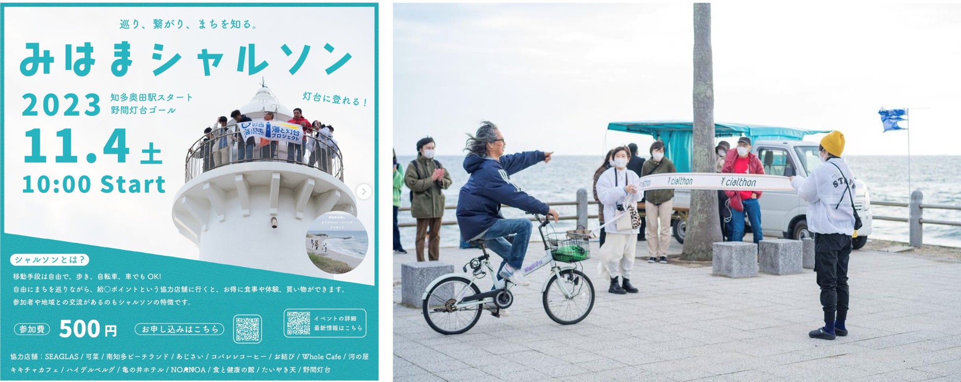 参加費は500円で、知多奥田駅から野間埼灯台までのコースを自由な移動手段で楽しむことができます。