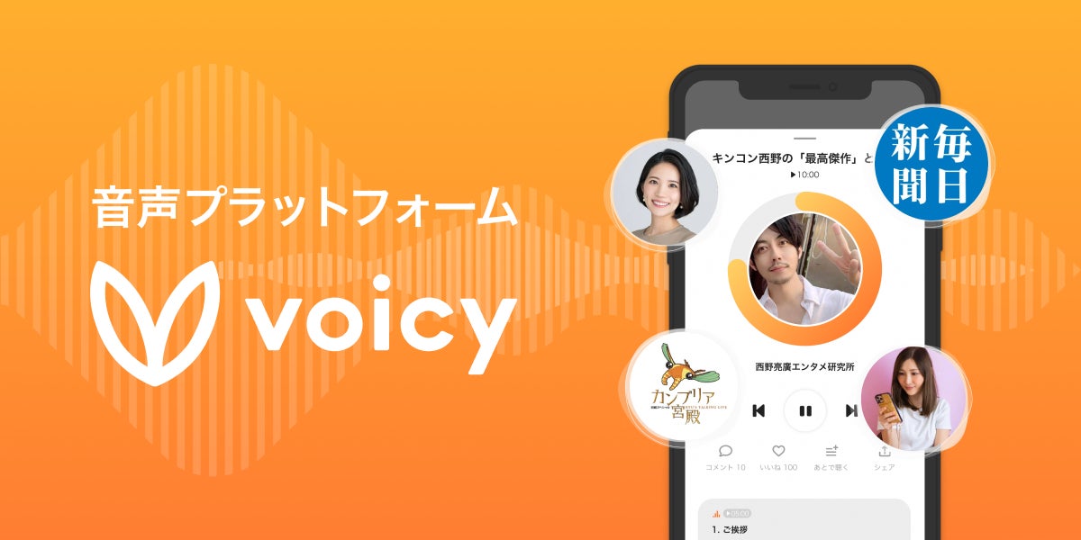 Voicyは、会員登録者数180万人を誇る音声プラットフォームで、厳選されたコンテンツを提供しています。