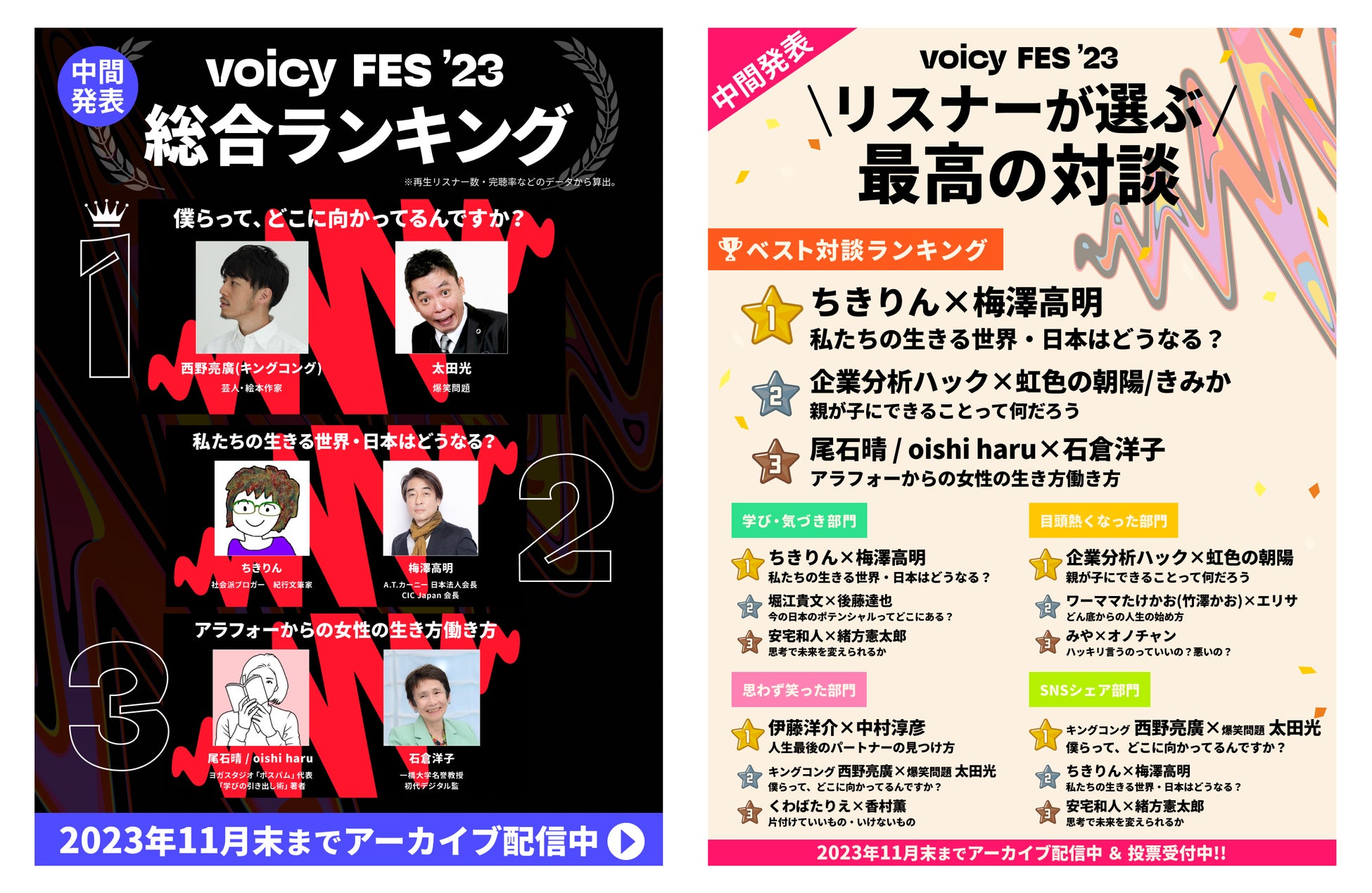 - Voicy FES ’23は11,000人以上の有料参加者を集め、昨年を大きく上回る盛況となった