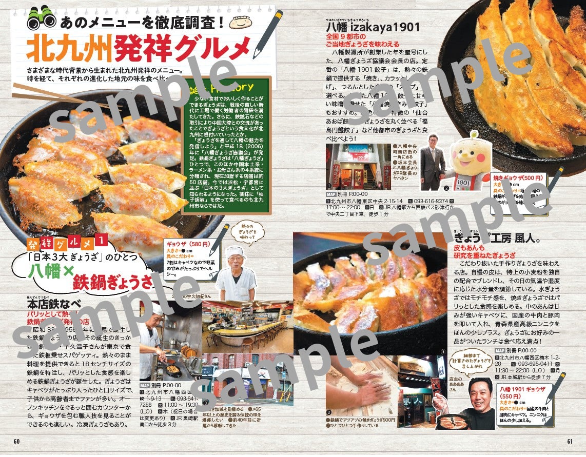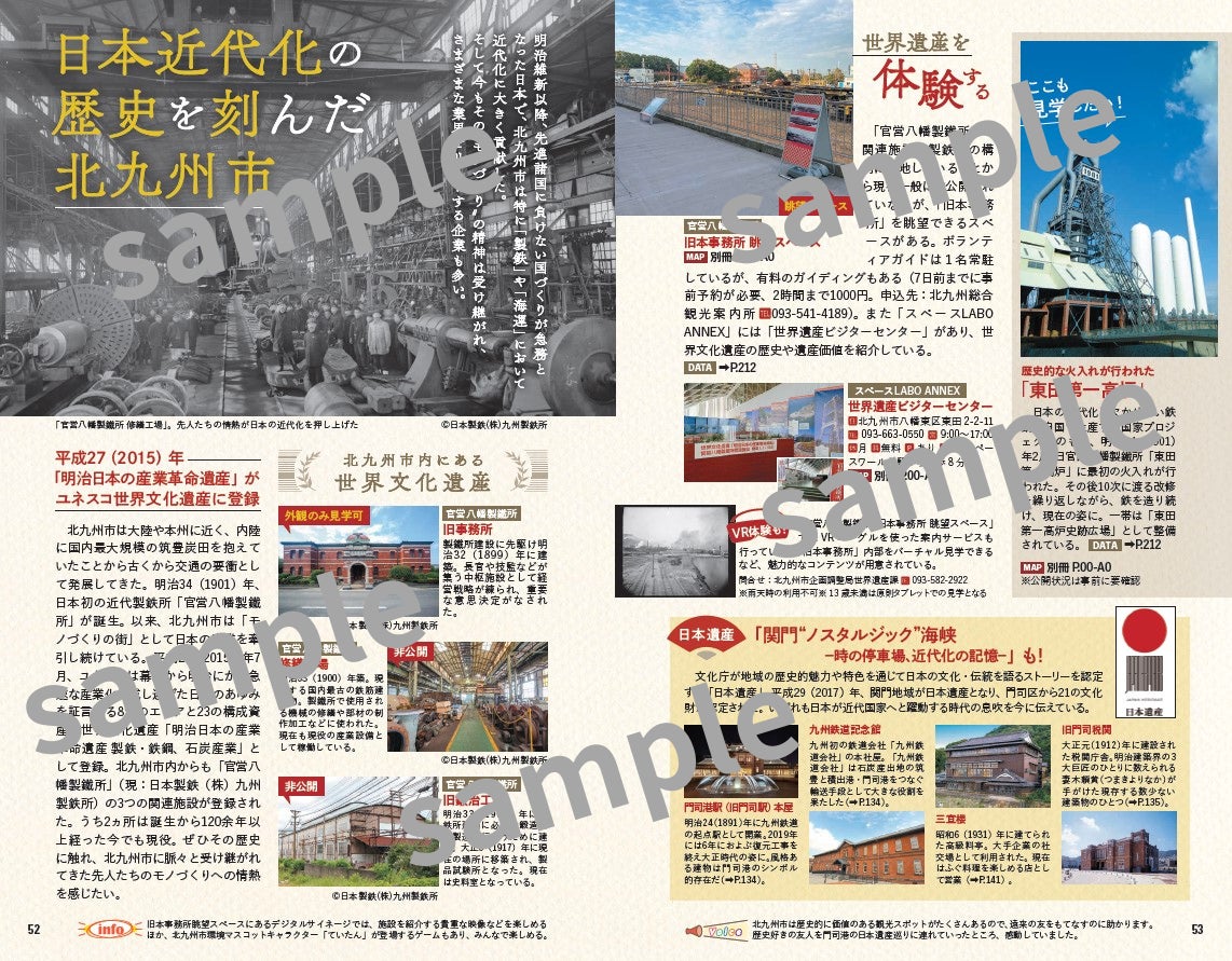 また、交通ガイドや各エリアの特徴も掲載されており、読者に北九州市の魅力を伝えるために400ページにわたっています。