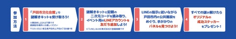 参加方法は、戸田市文化会館で謎解きキットを受け取り、LINEを使用して市内の公共施設を巡りながら手がかりを集め、謎の答えを入力するという流れです。