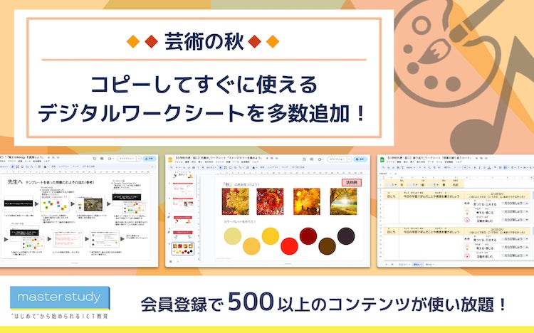 - テーマは「芸術の秋」で、図工美術音楽の授業に活用できるテンプレートが公開された