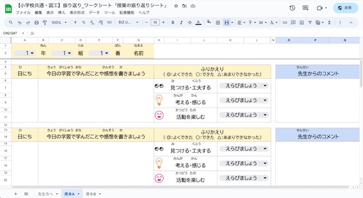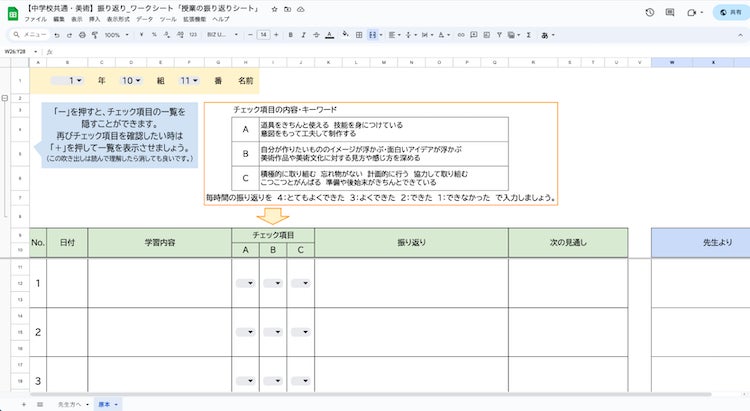 2. 授業の振り返りシート:授業の反省や学びをまとめるためのテンプレートです。