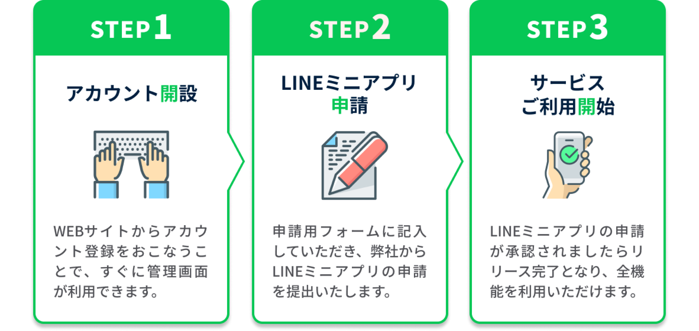 申請用フォームに記入していただき、弊社からLINEミニアプリの申請を提出いたします。