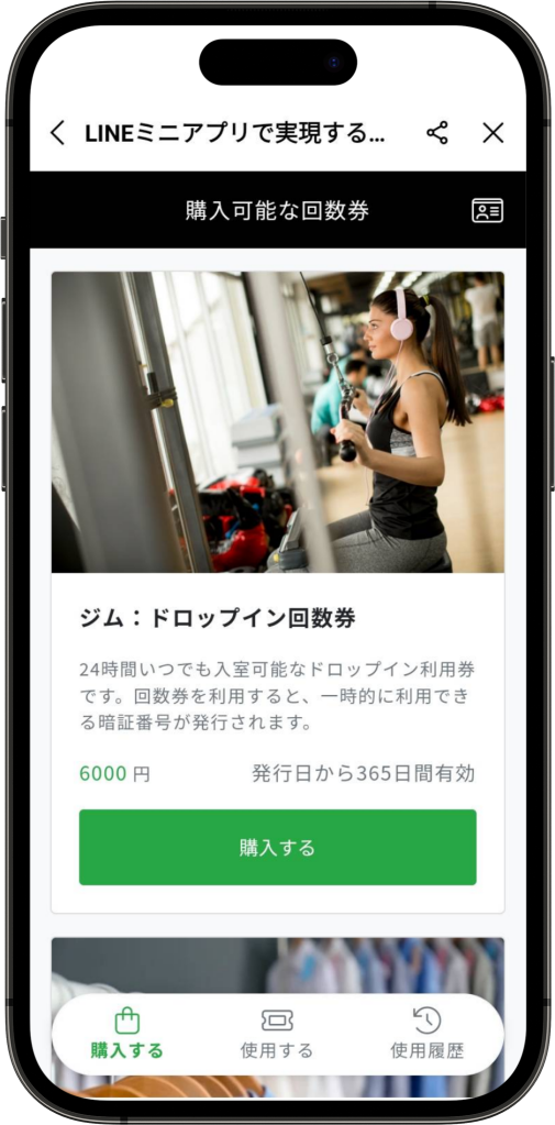LINE上での事前クレジット決済により、RemoteLOCK連携済みの回数券が購入できる