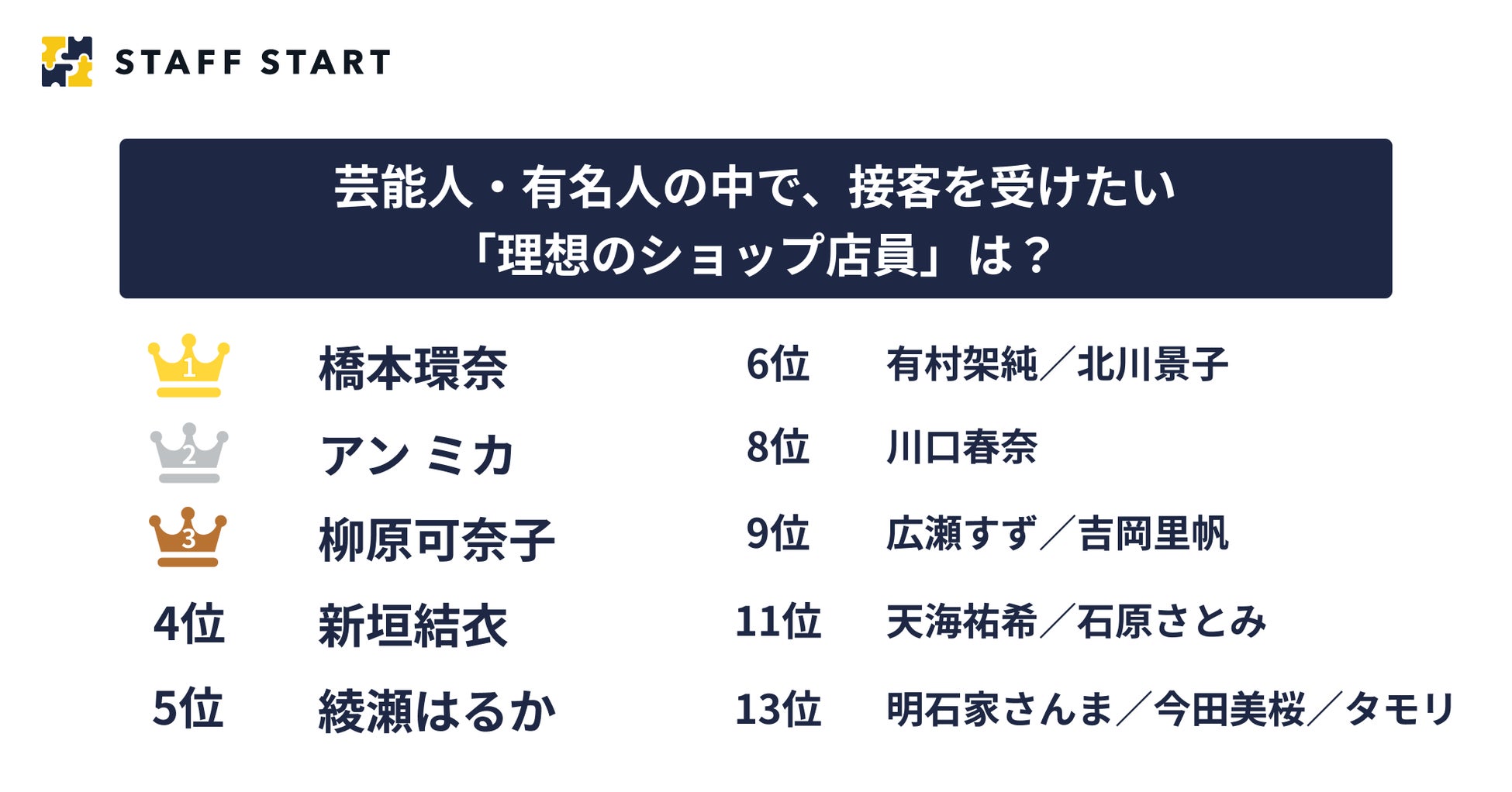 - 橋本環奈さんが「理想のショップ店員」に選ばれる