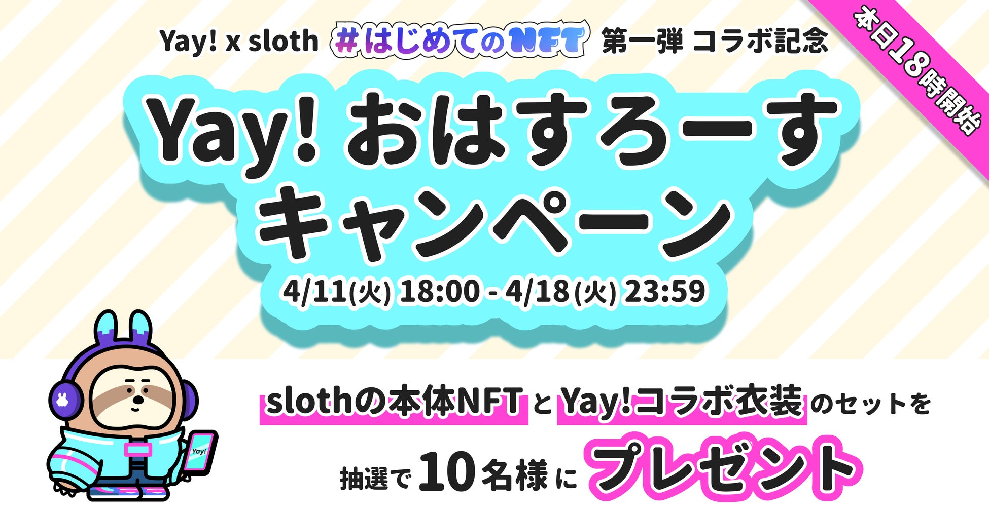 Yay! x sloth共同プロジェクト「#はじめてのNFT」の第一弾となるコラボ記念「Yay! おはすろーす」キャンペーンを実施いたします。
