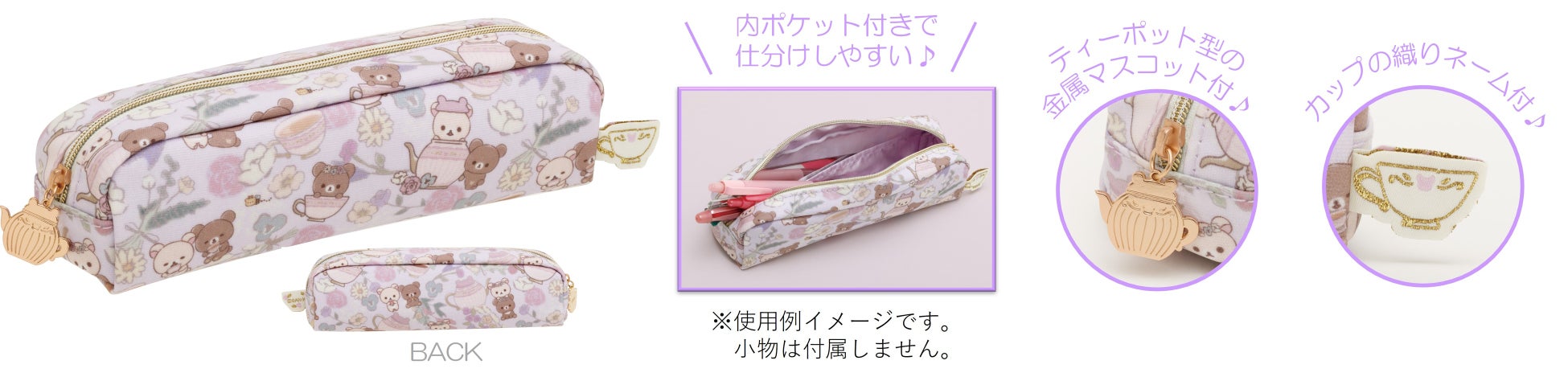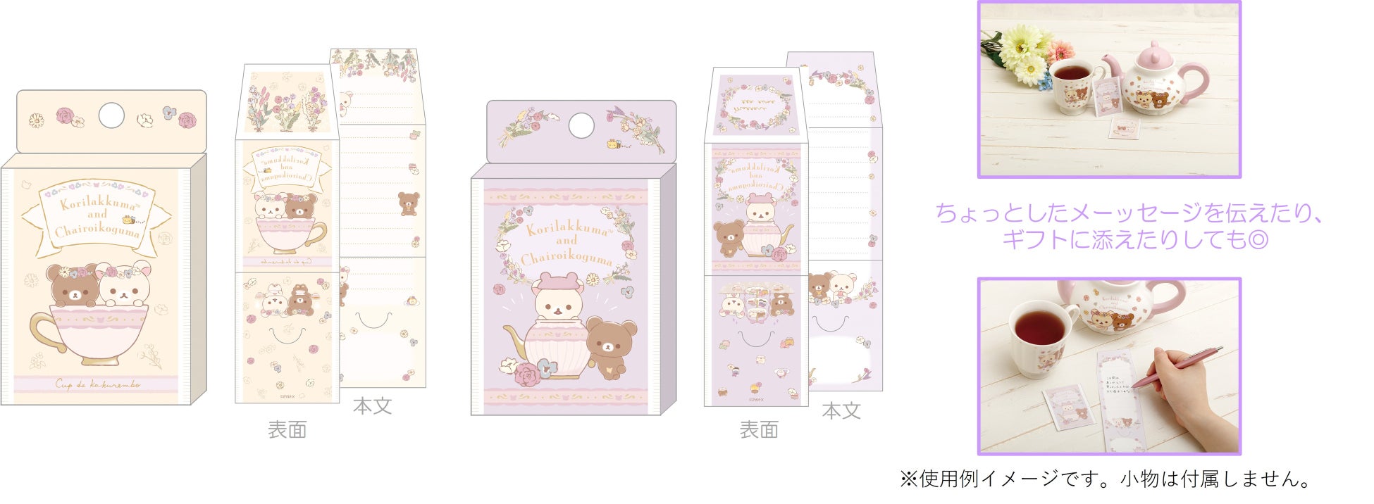 商品ラインナップにはティーバッグメモ、ペンポーチ、貴重品ケース、収納ボックス、ティーカップ、ティーポットなどが含まれています。