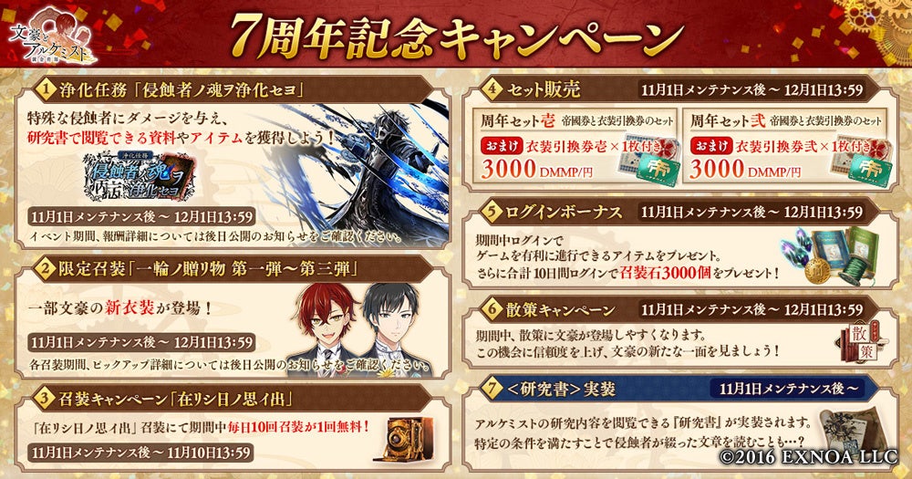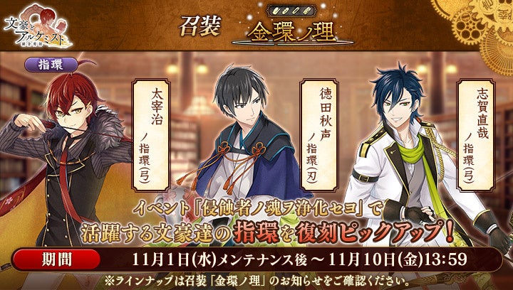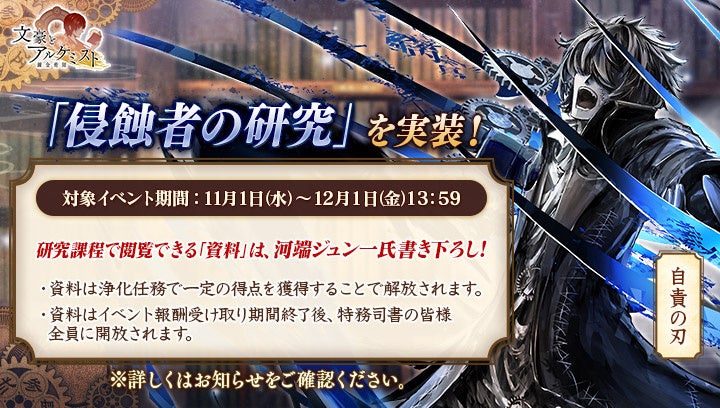- 「文豪とアルケミスト」の新イベント「浄化任務 侵蝕者ノ魂ヲ浄化セヨ」と限定召装『一輪ノ贈リ物 第一弾』を開催中