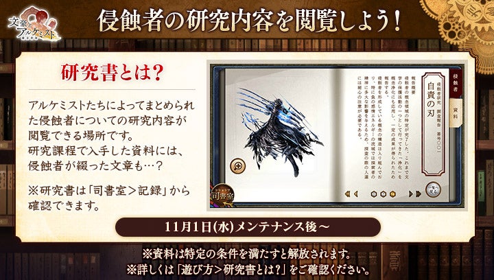 - イベントで特殊な侵蝕者にダメージを与え、新コンテンツ「研究書」で閲覧できる資料やアイテムを獲得可能