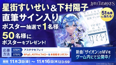 コラボ期間中は、星街すいせいさん作詞、下村陽子さん作曲の新曲【ザイオン】のMVがゲーム内で世界最速で公開されます。