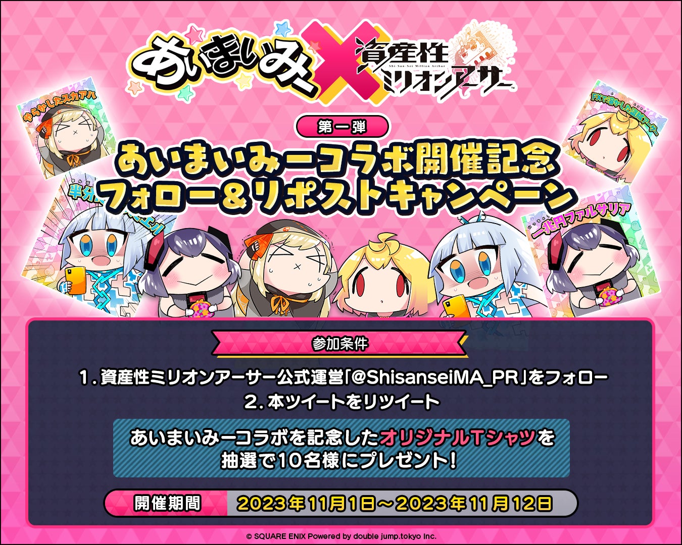 2023年11月1日から、株式会社スクウェア・エニックスは「あいまいみー×資産性ミリオンアーサー」というコラボレーションイベントを開催します。