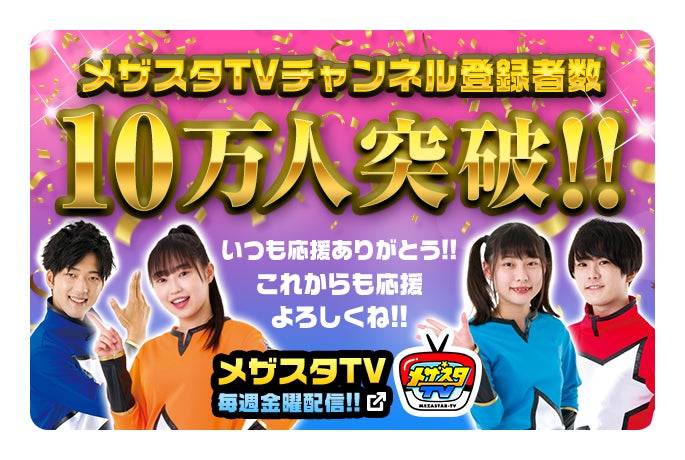- タカラトミーアーツが発売元で、メザスタTVのチャンネル登録者数10万人突破を祝って作られた