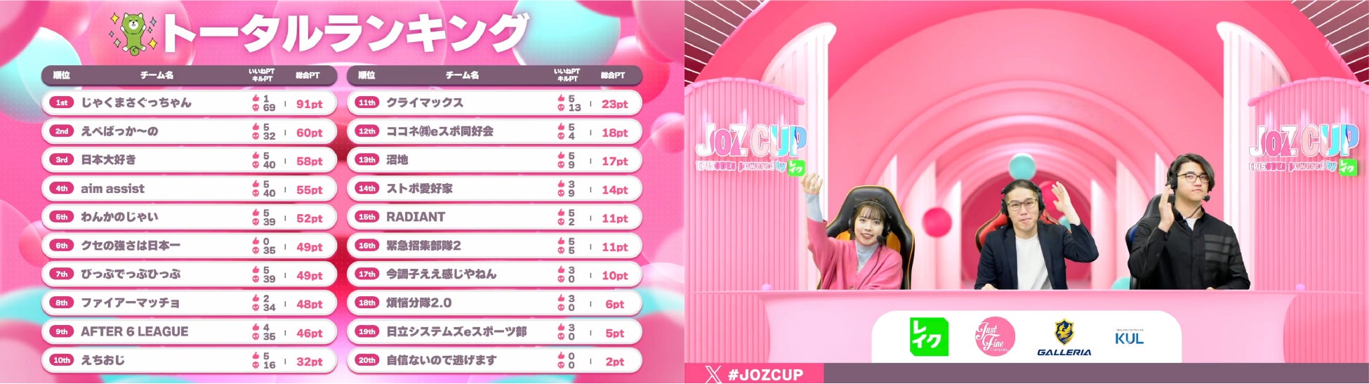 - JOZ CUP EPISODE5は61名20チームが参加した大会