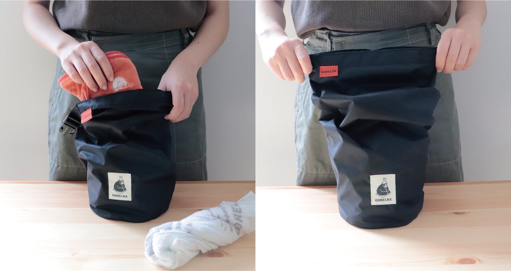 - 『ととのい袋』ははっ水仕様で濡れたものの収納に便利
