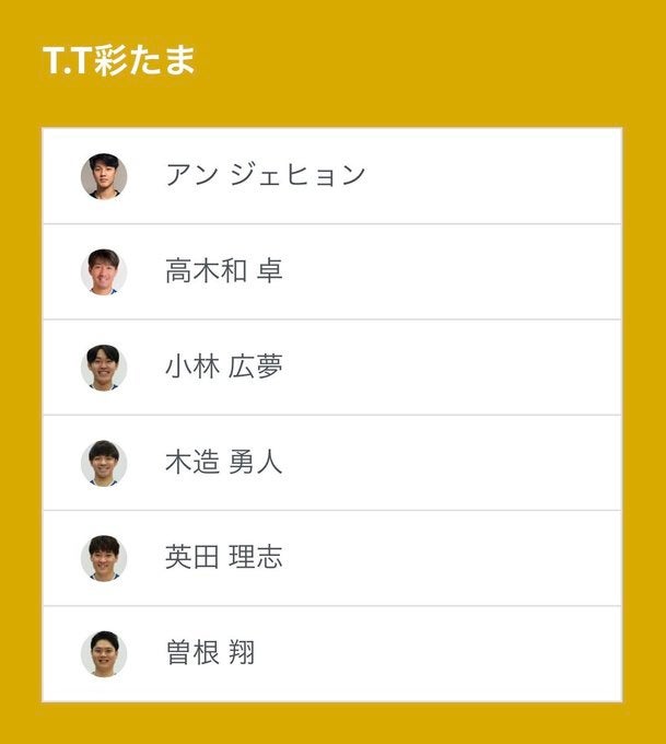 ノジマTリーグ2023-2024シーズン公式戦 11月4日(土)14:00試合開始 金沢ポート vs TT彩たま ベンチ入りメンバー発表