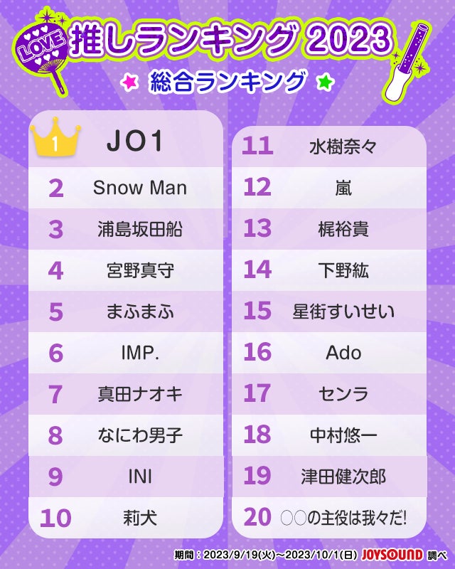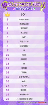 - JO1が総合ランキングで首位に輝いた