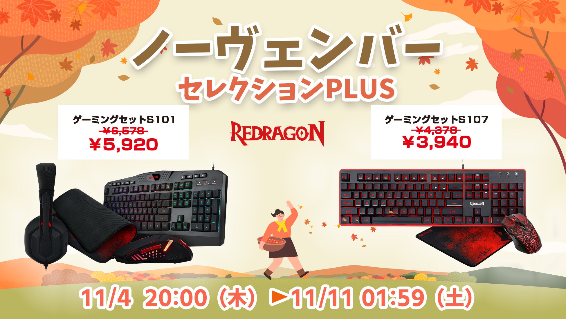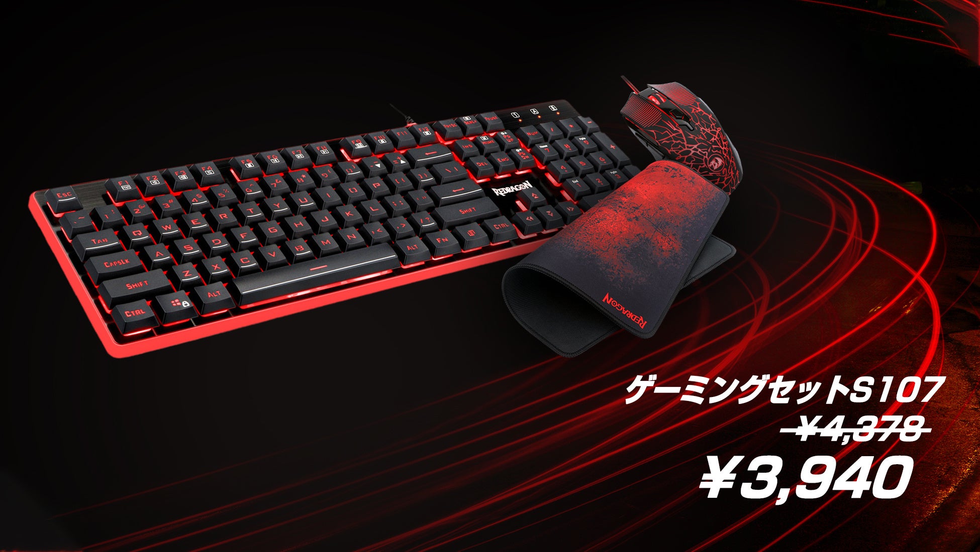 - REDRAGONのキーボード、マウス、マウスパッドの3点セットも限定価格3,940円で購入可能