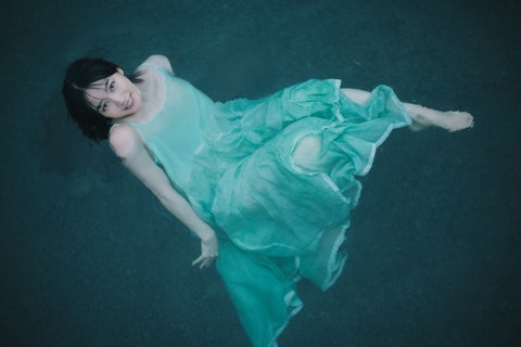 タイトなキャミソールやボリューミーなスカートを着た彼女のアンニュイな表情や、エメラルドグリーンのキャミワンピースで湖に入る姿などが収められています。