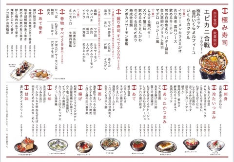 スシエビスは、手軽に寿司を楽しめるお店で、握りは1貫99円からご提供しております。