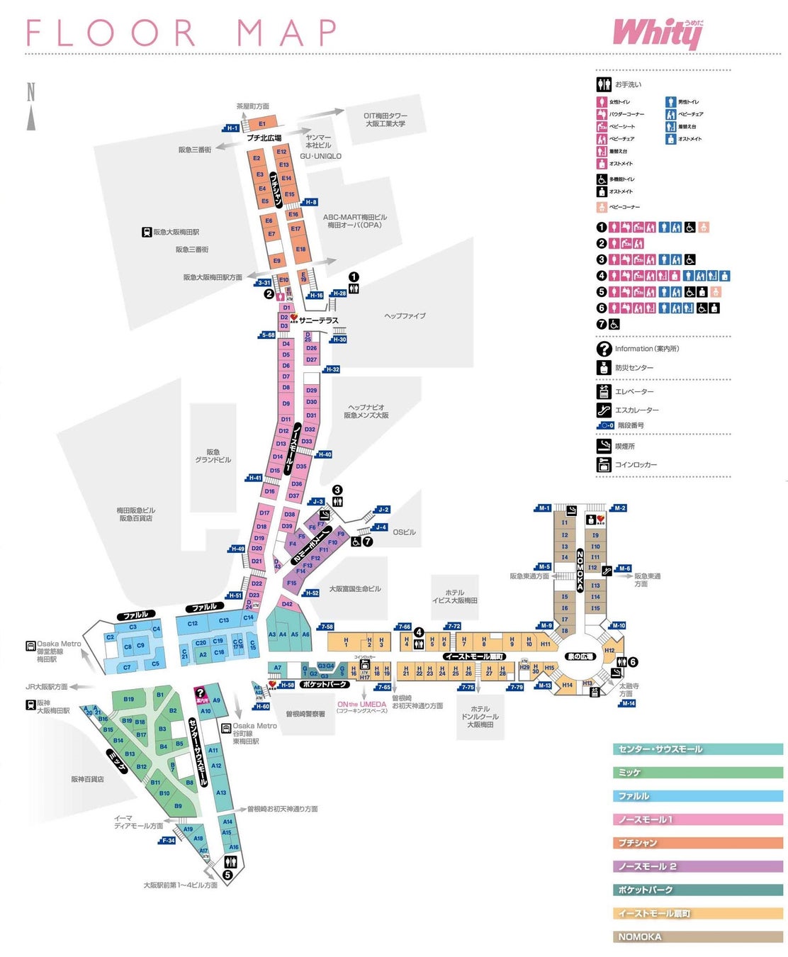 - 場所はホワイティうめだ内の複数のエリア